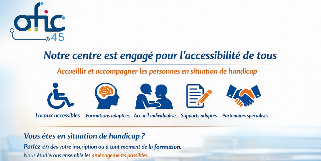 Notre centre de formation s’engage à favoriser l’accessibilité de ses formations à tous, et à accueillir les personnes en situation de handicap dans les meilleures conditions possibles.